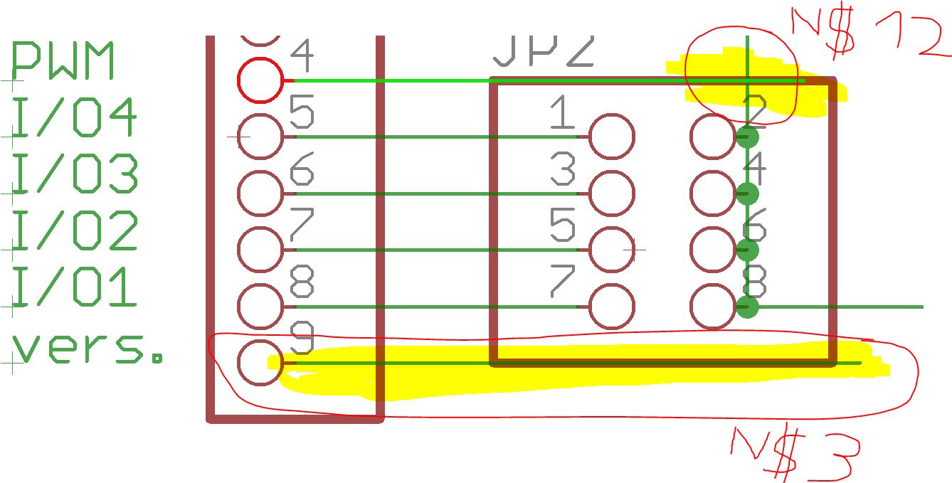 ich hab grad mal fix meine Drossel aufgemacht. Pin 4 (N$12) und Pin 9 (N$3) sind nirgendwo angebunden. Aus dem Wiki: