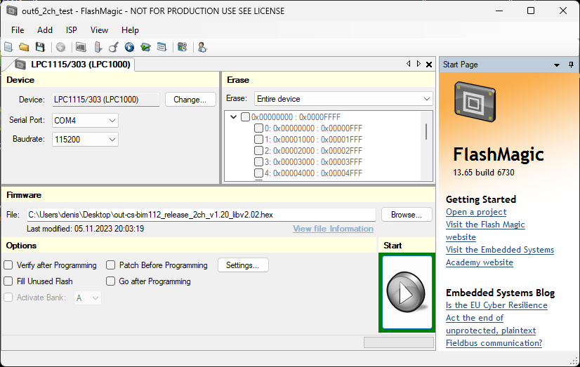 Diese konnte ich noch mittels FlashMagic auf meinem dritten und letzten Eingangsmodul flashen und via ETS programmieren.